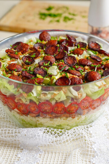 Sałatka warstwowa z kiełbasą