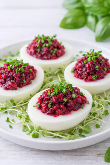 Pyszne jajka faszerowane ćwikłą to idealna przekąska na Święta Wielkanocne i nie tylko.