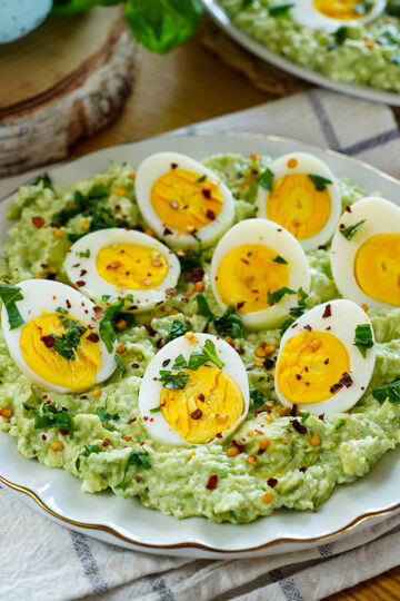 Jajka z zieloną pastą to smaczna i prosta w przygotowaniu przekąska, która doskonale sprawdzi się na święta wielkanocne, ale i nie tylko.