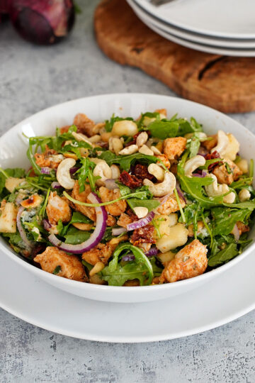 Szybki i prosty przepis na lekką sałatkę z kurczakiem, rukolą i fetą. Idealna na obiad, kolację lub przyjęcie.