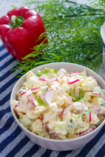 Sałatka makaronowa z rzodkiewką to propozycja idealna na dla osób, które chcą zjeść coś lekkiego, ale jednocześnie pożywnego.