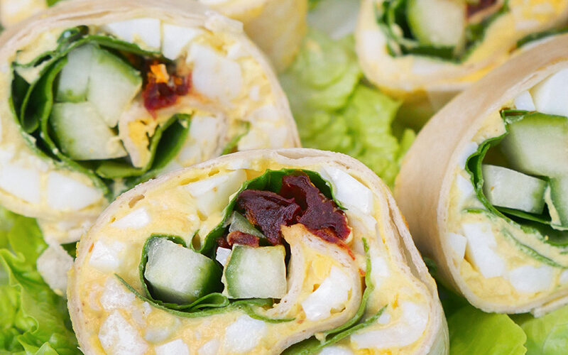 W tym wpisie przygotowałam dla Was przepis na pyszne roladki z tortilli z pastą jajeczną i suszonymi pomidorami, w towarzystwie świeżego szpinaku i ogórka.